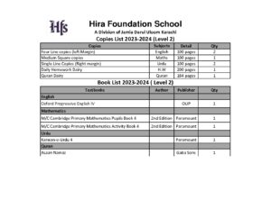 HIFZ LEVEL two booklist 2023-24